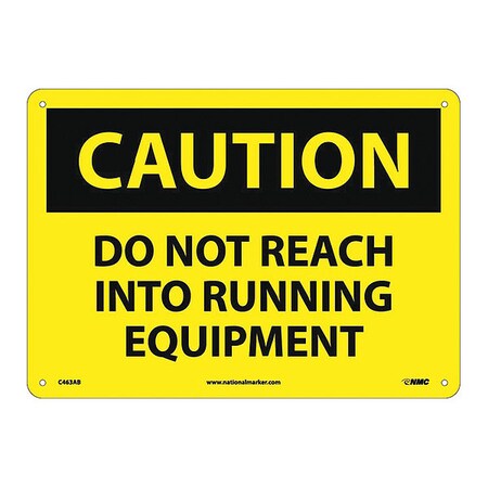 NMC C463AB OSHA Sign, Legend "CAUTION - DO NOT REACH INTO RUNNING EQUIPMENT", 14" Length x 10" Height, Aluminum, Black on Yellow