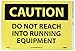 - Header "CAUTION" and legend "DO NOT REACH INTO RUNNING EQUIPMENT"