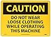 | Feature | Header "CAUTION" and legend "DO NOT WEAR LOOSE CLOTHING WHILE OPERATING THIS MACHINE" |