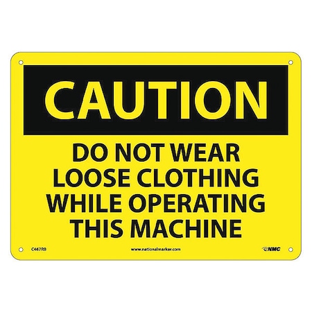 NMC C467RB OSHA Sign, Legend "CAUTION - DO NOT WEAR LOOSE CLOTHING WHILE OPERATING THIS MACHINE", 14" Length x 10" Height, Rigid Plastic, Black on Yellow