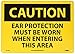 - Visibility: the legend “CAUTION - EAR PROTECTION MUST BE WORN WHEN ENTERING THIS AREA” is printed on the sign in clear, bold font to ensure the message is easily visible and readable in most lighting conditions and even from a distance