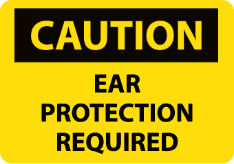 - Caution Signage: this sign instructs the workers and visitors to wear ear protection before entering a potentially hazardous zone to make them aware about the preventative measures to be taken to avoid severe incidents