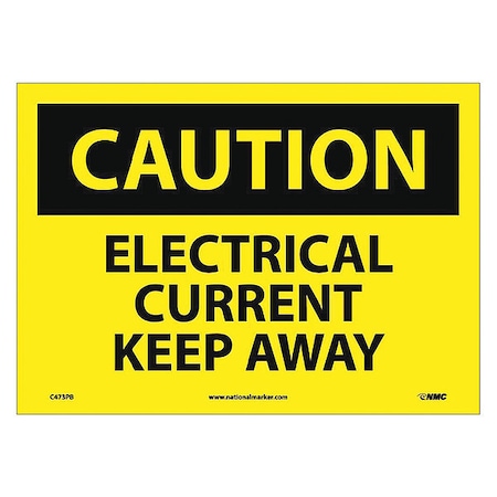 NMC C473PB OSHA Sign, Legend "CAUTION - ELECTRICAL CURRENT KEEP AWAY", 14" Length x 10" Height, Pressure Sensitive Adhesive Vinyl, Black on Yellow