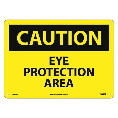 NMC C483AB OSHA Sign, Legend "CAUTION - EYE PROTECTION AREA", 14" Length x 10" Height, Aluminum, Black on Yellow