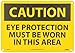 - Easy Visibility: the legend “CAUTION - EYE PROTECTION MUST BE WORN IN THIS AREA” is printed in bold and legible text to ensure better readability
