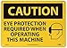 | Feature | Header "CAUTION" and legend "EYE PROTECTION REQUIRED WHEN OPERATING THIS MACHINE" with Graphic |
