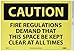 | Feature | Header "CAUTION" and legend "FIRE REGULATIONS DEMAND THAT THIS SPACE BE KEPT CLEAR AT ALL TIMES" |