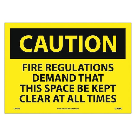 NMC C490PB CAUTION - FIRE REGULATIONS DEMAND THAT THIS SPACE BE KEPT CLEAR AT ALL TIMES - 14 in. x 10 in. PS Vinyl Caution Signage