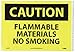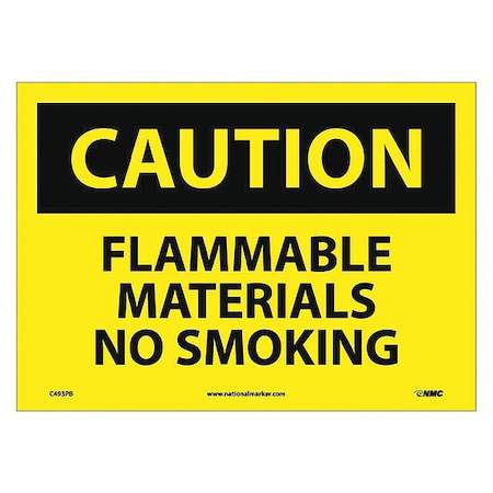 NMC C493PB CAUTION - FLAMMABLE MATERIALS NO SMOKING Sign - 14 in. x 10 in., Black Text on Yellow, PS Vinyl Caution Sign