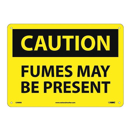 NMC C498RB OSHA Sign, Legend "CAUTION - FUMES MAYBE PRESENT", 14" Length x 10" Height, Rigid Plastic, Black on Yellow