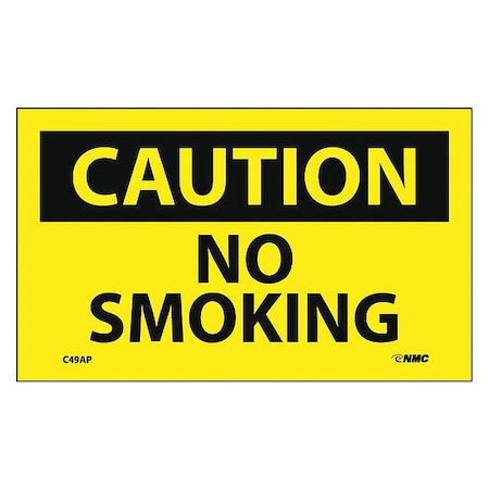 NMC C49AP OSHA Sign, Legend "CAUTION - NO SMOKING", 5" Length x 3" Height, Pressure Sensitive Adhesive Vinyl, Black on Yellow (Pack of 5)