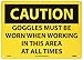 | Feature | Header "CAUTION" and legend "GOGGLES MUST BE WORN WHEN WORKING IN THIS AREA AT ALL TIMES" |