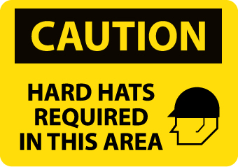 | Feature | Header "CAUTION" and legend "HARD HATS REQUIRED IN THIS AREA" with Graphic |