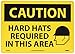 | Feature | Header "CAUTION" and legend "HARD HATS REQUIRED IN THIS AREA" with Graphic |