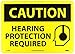 | Feature | Header "CAUTION" and legend "HEARING PROTECTION REQUIRED" with Graphic |