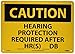| Feature | Header "CAUTION" and legend "HEARING PROTECTION REQUIRED AFTER __HR(S) __DB" |