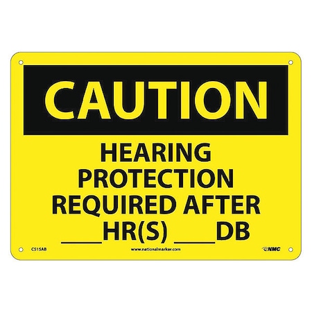 NMC C515AB CAUTION - HEARING PROTECTION REQUIRED AFTER __HR(S) __DB Sign - 14 in. x 10 in., Black Text on Yellow, Aluminum Caution Sign