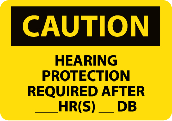 - High Visibility: the OSHA caution sign has legend “CAUTION – HEARING PROTECTION REQUIRED AFTER __HR(S) __DB” in clear font, ensuring easy readability. The legible text offers maximum visibility in busy corridors or passageways