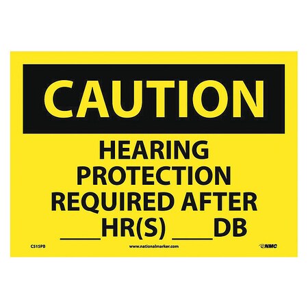 NMC C515PB CAUTION - HEARING PROTECTION REQUIRED AFTER __HR(S) __DB Sign - 10 in. x 7 in., Black Text on Yellow, PS Vinyl Caution Sign