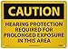 | Feature | Header "CAUTION" and legend "HEARING PROTECTION REQUIRED FOR PROLONGED EXPOSURE IN THIS AREA" |