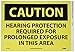 | Feature | Header "CAUTION" and legend "HEARING PROTECTION REQUIRED FOR PROLONGED EXPOSURE IN THIS AREA" |