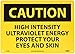 | Feature | Header "CAUTION" and legend "HIGH INTENSITY ULTRAVIOLET ENERGY PROTECT YOUR EYES AND SKIN" |