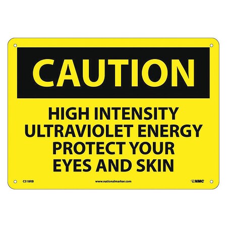 NMC C518RB OSHA Sign, Legend "CAUTION - HIGH INTENSITY ULTRAVIOLET ENERGY PROTECT YOUR EYES AND SKIN", 14" Length x 10" Height, Rigid Plastic, Black on Yellow