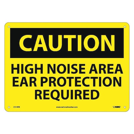 NMC C519RB OSHA Sign, Legend "CAUTION - HIGH NOISE AREA EAR PROTECTION REQUIRED", 14" Length x 10" Height, Rigid Plastic, Black on Yellow