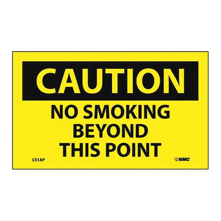 NMC C51AP OSHA Sign, Legend "CAUTION - NO SMOKING BEYOND THIS POINT", 5" Length x 3" Height, Pressure Sensitive Adhesive Vinyl, Black on Yellow (Pack of 5)