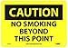 | Feature | Header "CAUTION" and legend "NO SMOKING BEYOND THIS POINT" |