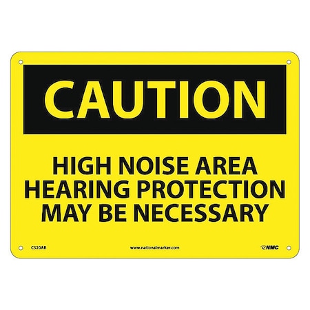 NMC C520AB OSHA Sign, Legend "CAUTION - HIGH NOISE AREA HEARING PROTECTION MAY BE NECESSARY", 14" Length x 10" Height, Aluminum, Black on Yellow