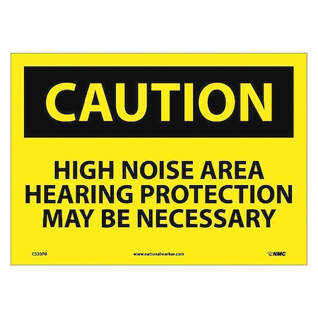 NMC C520PB OSHA Sign, Legend "CAUTION - HIGH NOISE AREA HEARING PROTECTION MAY BE NECESSARY", 14" Length x 10" Height, Pressure Sensitive Vinyl, Black on Yellow