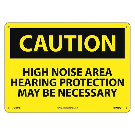 NMC C520RB OSHA Sign, Legend "CAUTION - HIGH NOISE AREA HEARING PROTECTION MAY BE NECESSARY", 14" Length x 10" Height, Rigid Plastic, Black on Yellow