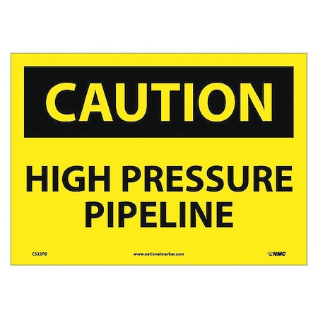 NMC C522PB OSHA Sign, Legend "CAUTION - HIGH PRESSURE PIPELINE", 14" Length x 10" Height, Pressure Sensitive Vinyl, Black on Yellow