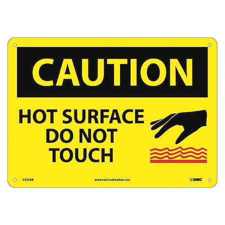 NMC C525AB CAUTION - HOT SURFACE - DO NOT TOUCH - 14 in. x 10 in. Aluminum Caution Sign with Graphic, Yellow/Black Text on Black/Yellow Base