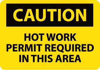 | Feature | Header "CAUTION" and legend "HOT WORK PERMIT REQUIRED IN THIS AREA" |