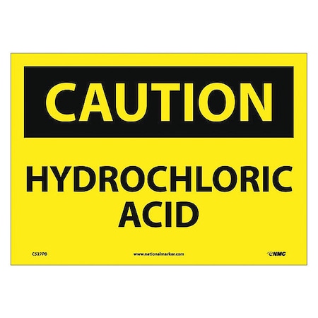 NMC C527PB OSHA Sign, Legend "CAUTION - HYDROCHLORIC ACID", 14" Length x 10" Height, Pressure Sensitive Vinyl, Black on Yellow