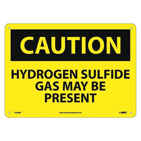 NMC C528RB OSHA Sign, Legend "CAUTION - HYDROGEN SULFIDE GAS MAY BE PRESENT", 14" Length x 10" Height, Rigid Plastic, Black on Yellow