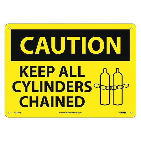 NMC C530AB OSHA Sign, Legend "CAUTION - KEEP ALL CYLINDERS CHAINED" with Graphic, 14" Length x 10" Height, Aluminum, Black on Yellow