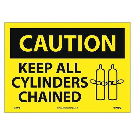 NMC C530PB OSHA Sign, Legend "CAUTION - KEEP ALL CYLINDERS CHAINED" with Graphic, 14" Length x 10" Height, Pressure Sensitive Vinyl, Black on Yellow