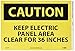 - Header "CAUTION" and legend "KEEP ELECTRIC PANEL AREA CLEAR FOR 36 INCHES"