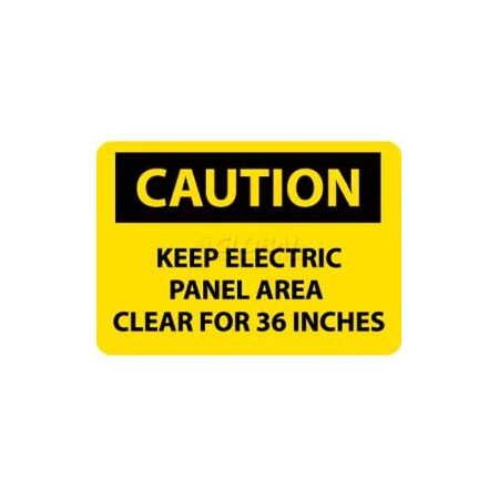 NMC C533PB OSHA Sign, Legend "CAUTION - KEEP ELECTRIC PANEL AREA CLEAR FOR 36 INCHES", 14" Length x 10" Height, Pressure Sensitive Vinyl, Black on Yellow