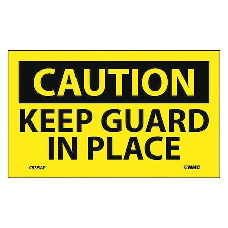 NMC C535AP OSHA Sign, Legend "CAUTION - KEEP GUARD IN PLACE", 5" Length x 3" Height, Pressure Sensitive Vinyl, Black on Yellow (Pack of 5)