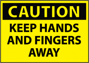 | Feature | Header "CAUTION" and legend "KEEP HANDS AND FINGERS AWAY" |