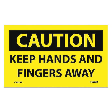 NMC C537AP OSHA Sign, Legend "CAUTION - KEEP HANDS AND FINGERS AWAY", 5" Length x 3" Height, Pressure Sensitive Vinyl, Black on Yellow (Pack of 5)