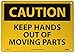 - Header "CAUTION" and legend "KEEP HANDS OUT OF MOVING PARTS"