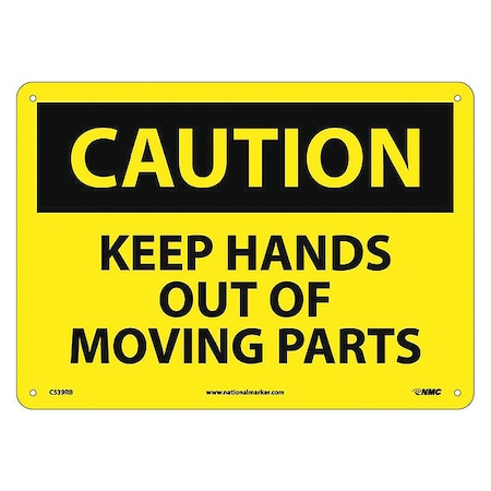 NMC C539RB OSHA Sign, Legend "CAUTION - KEEP HANDS OUT OF MOVING PARTS", 14" Length x 10" Height, Rigid Plastic, Black on Yellow