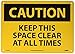 | Feature | Header "CAUTION" and legend "KEEP THIS SPACE CLEAR AT ALL TIMES" |