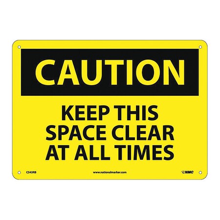 NMC C543RB OSHA Sign, Legend "CAUTION - KEEP THIS SPACE CLEAR AT ALL TIMES", 14" Length x 10" Height, Rigid Plastic, Black on Yellow