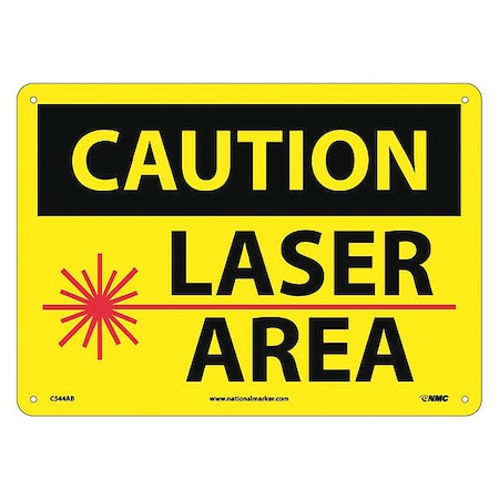 NMC C544AB OSHA Sign, Legend "CAUTION - LASER AREA" with Graphic, 14" Length x 10" Height, Aluminum, Black/Red on Yellow